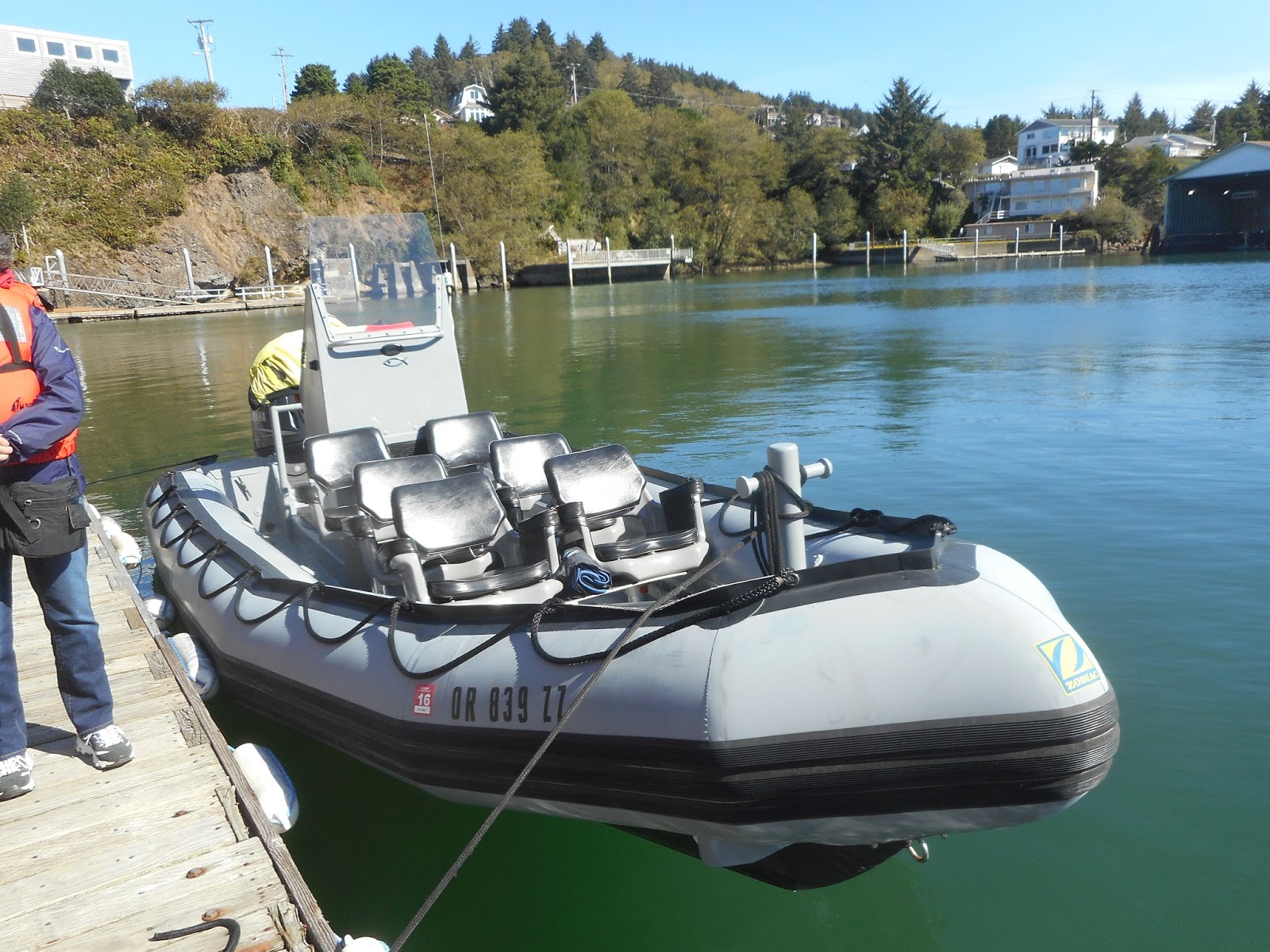 Our sturdy young male boat driver felt his Cheerios on the way back.....speeding too fast for us senior ladies leaping out of our chairs as the Zodiac bounced over high choppy waves. Finally he slowed and we more comfortably rolled over the waves back into the harbor.