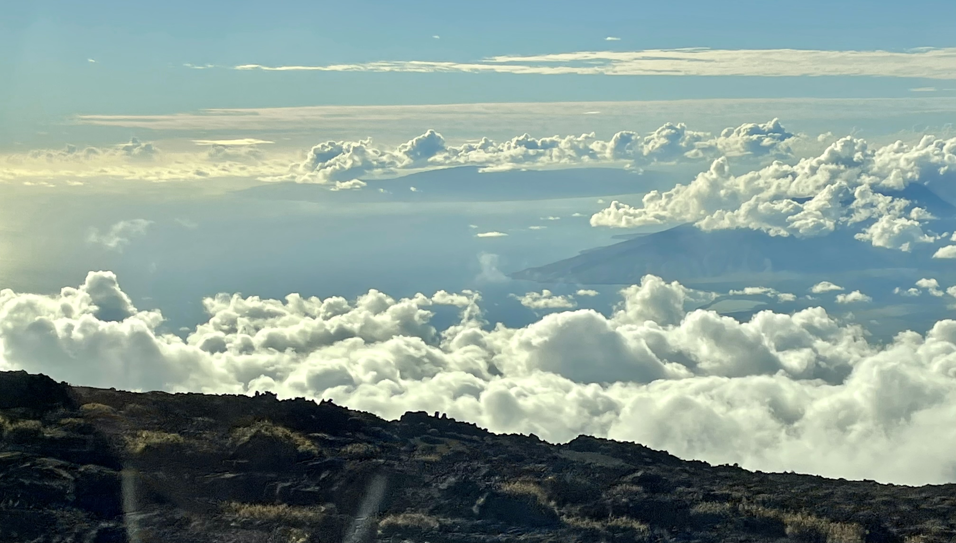 View of Pacific Ocean and Maui coast from the summit, above the clouds!
